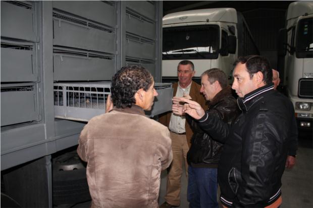 Fernando Silva y Luís Silva explicando los mecanismos de las jaulas de los camiones.